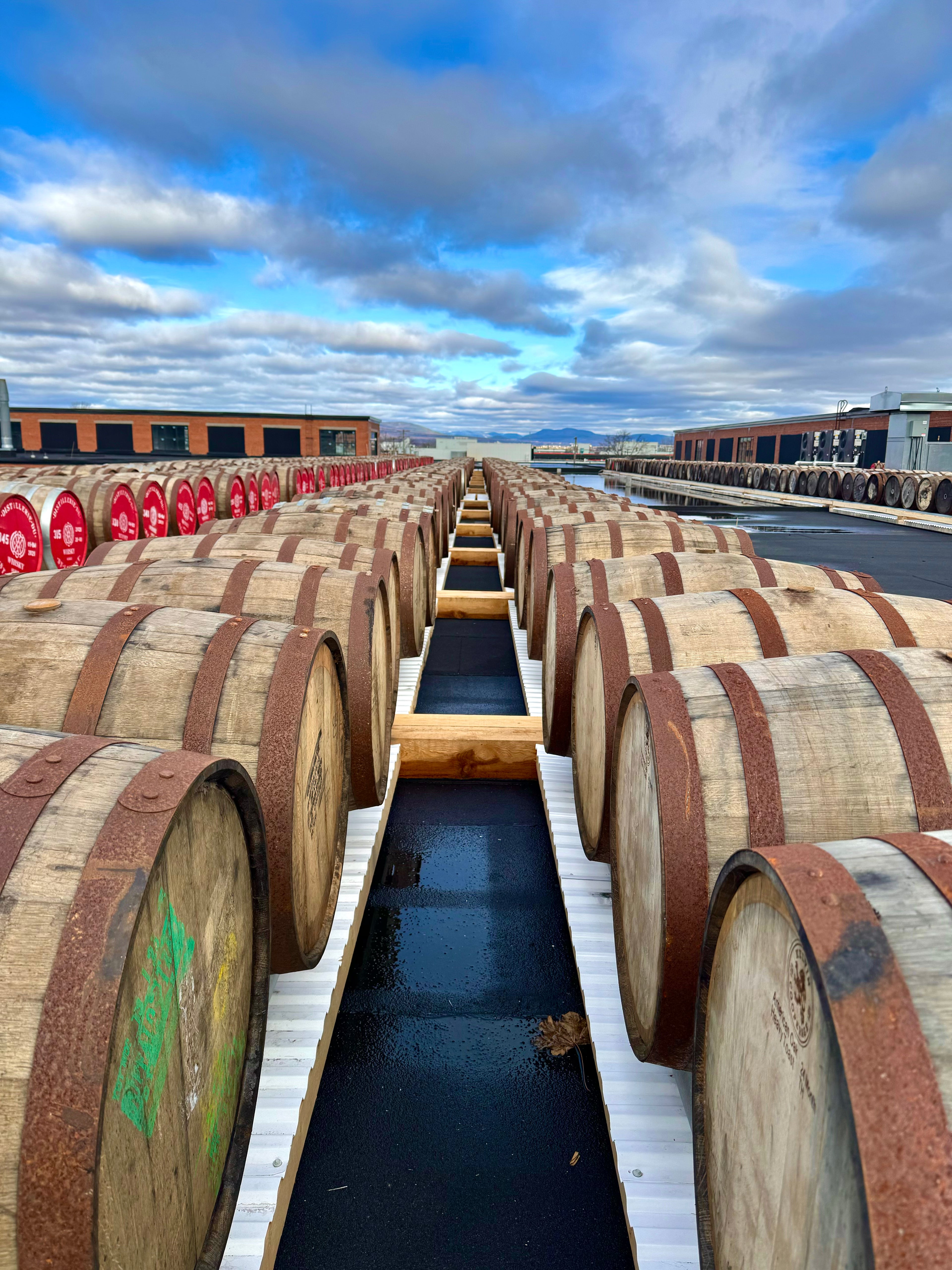 Une partie des spiritueux, notamment les whiskys, l’acerum et le gin vieilli, vieillissent aujourd’hui en extérieur, sur le toit de la distillerie.